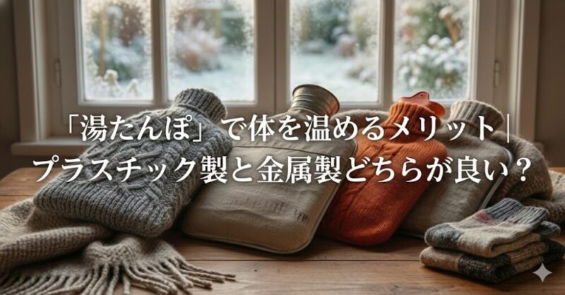 ホームセンターに行けば、色とりどりのプラスチック製湯たんぽが並んでいますが、私がおすすめするのは、昔ながらの「トタン(亜鉛メッキ鋼板)」などの金属製です。これには明確な理由があります。まず、金属製の多くは蓋を外せば「直火」にかけられることです(※IH対応のものもあります)。