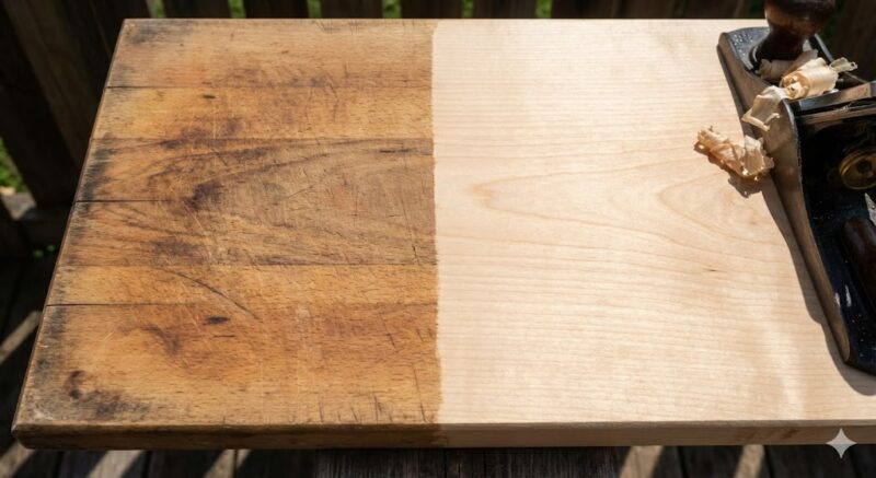 木のまな板の真価は、表面が汚れたり凹んだりしたら、「カンナで削り直せる」ことにあります。