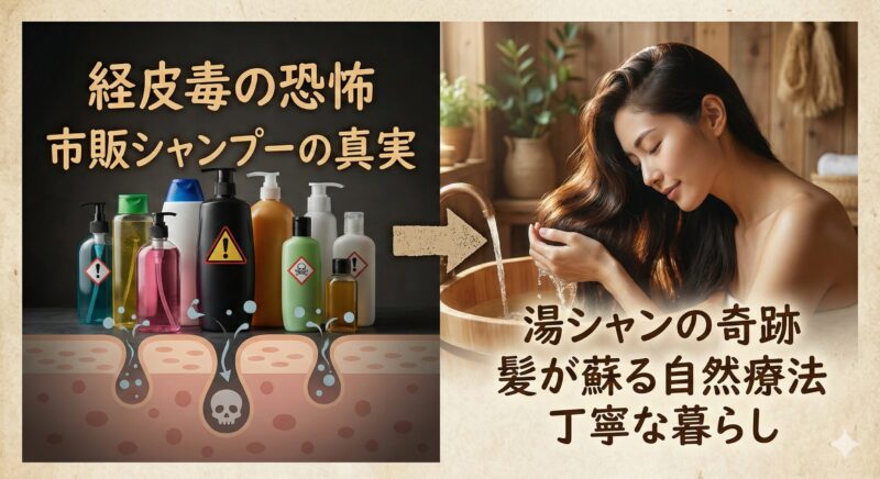 本記事では、生殖器を蝕む「経皮毒」のメカニズムと、お湯だけで汚れを落とし、髪を黒々と蘇らせる「湯シャン」の極意をお伝えします。